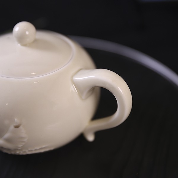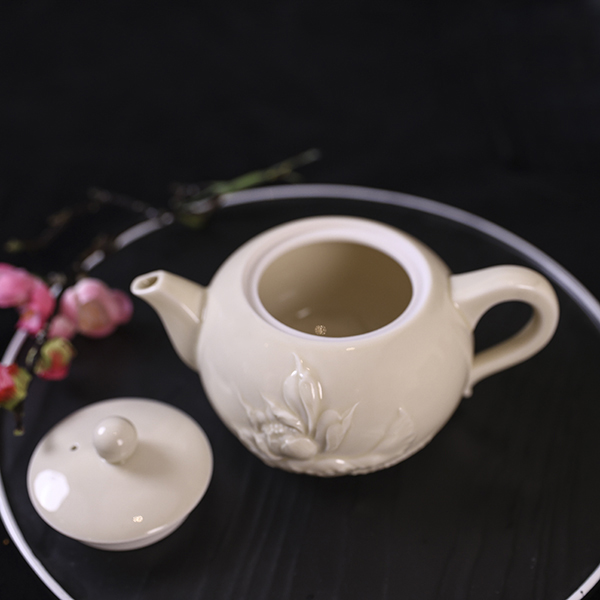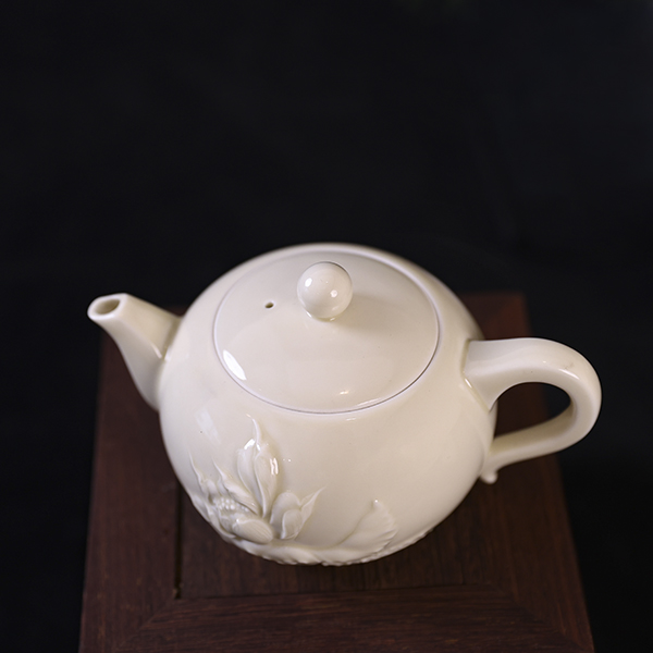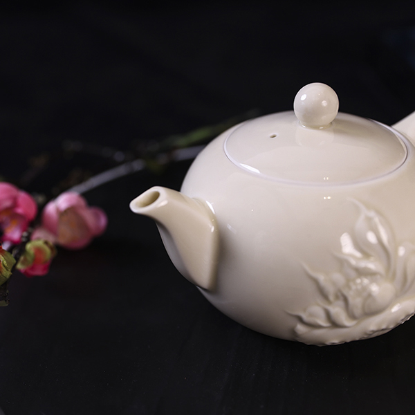 荷香壺的外壁刻有荷花紋飾,簡約古雅,釉水配方色白且微泛黃,成器釉色有“象牙白”之稱,玉質感足。以傳統(tǒng)工藝與現(xiàn)代審美的融合,彰顯原礦胎釉的古風之美。